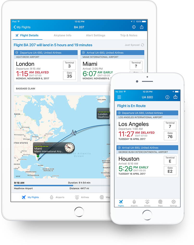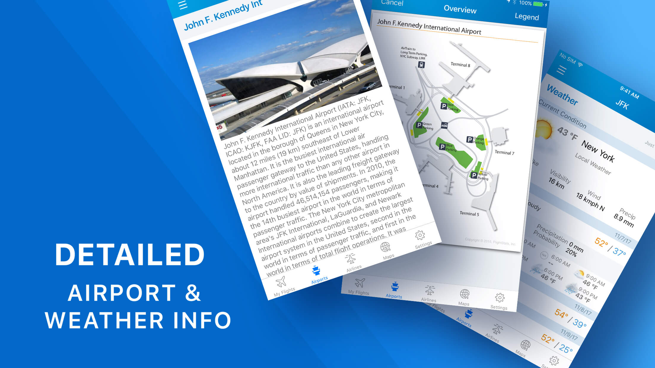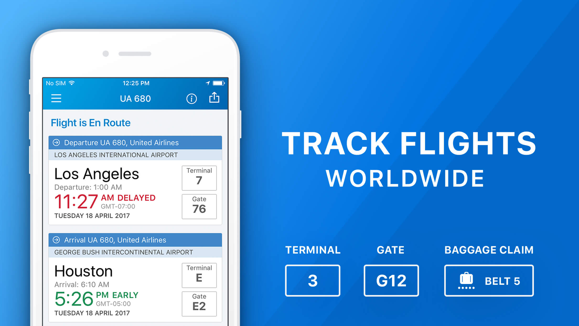 The Flight Tracker is the go-to app for managing and tracking your flights. It contains in depth information about all available flights and airlines; arrivals, departures, terminal & gates, delays, and much more.